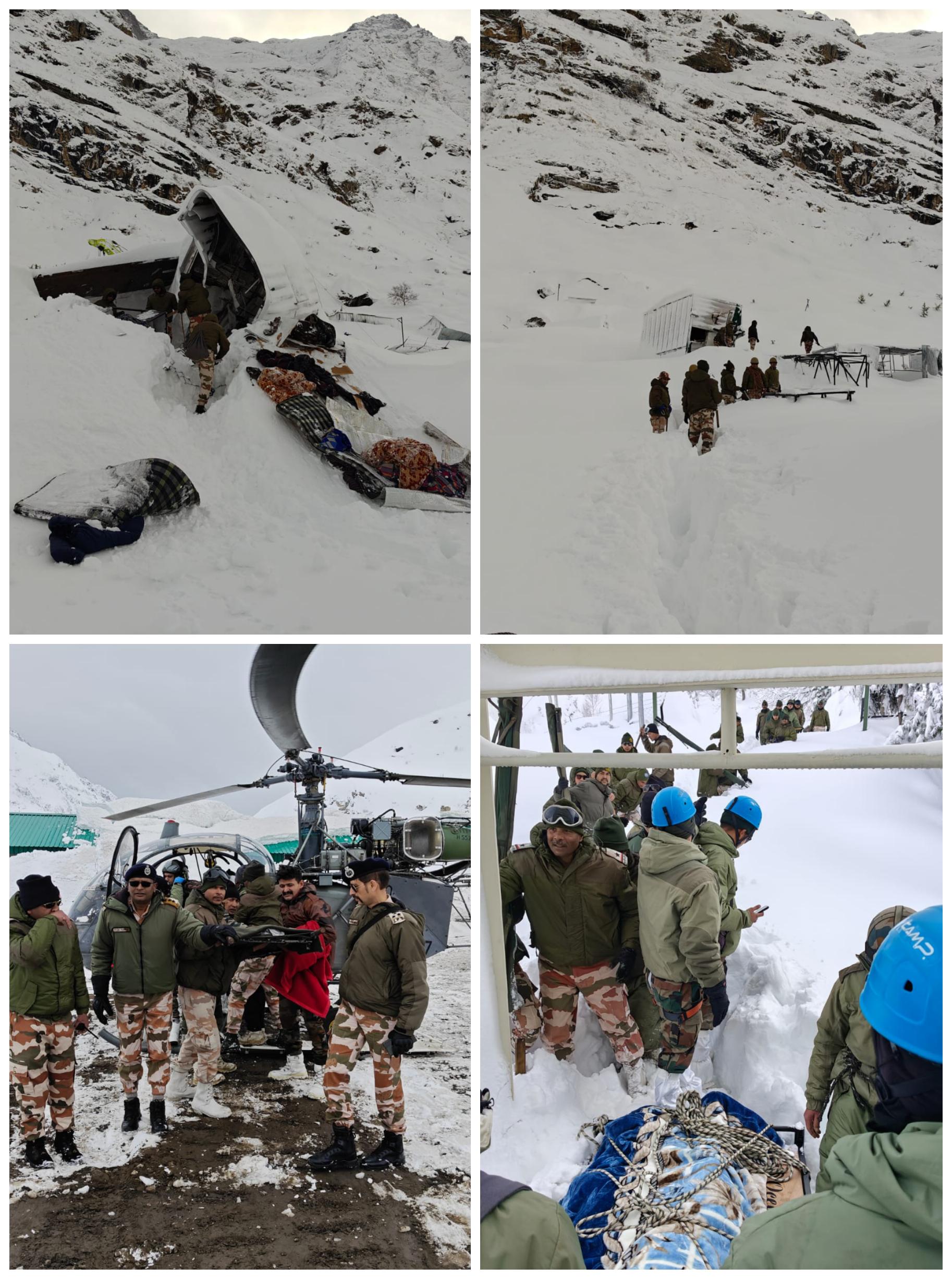 मुख्यमंत्री ने आवश्यकता पड़ने पर और अधिक हेलीकॉप्टर लगाए जाने के निर्देश दिए हैं। शनिवार को दोपहर 03 बजे तक माणा/बद्रीनाथ से रैस्क्यू किये गये लोगों में से 29 लोगों को हैलीकाप्टर के माध्यम से जोशीमठ लाया गया, जिनका उपचार आर्मी हास्पिटल में किया जा रहा है।